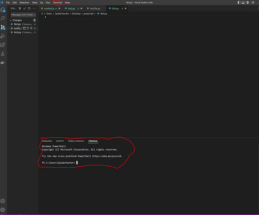 Next, we open our terminal, if you are using Vscode which is suggested you use, you will find the terminal at the top menu bar and it will open a new interface below your code panel.